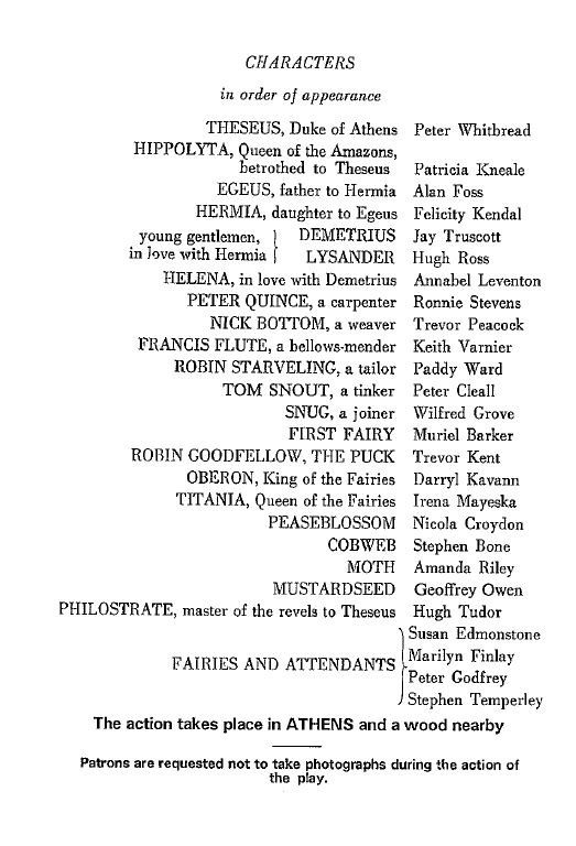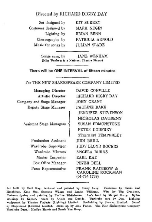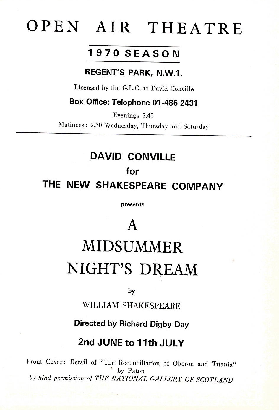Richard Digby Day directed the 1970 production of A Midsummer Night's Dream, which featured Felicity Kendal as Hermia and Trevor Peacock as Nick Bottom.