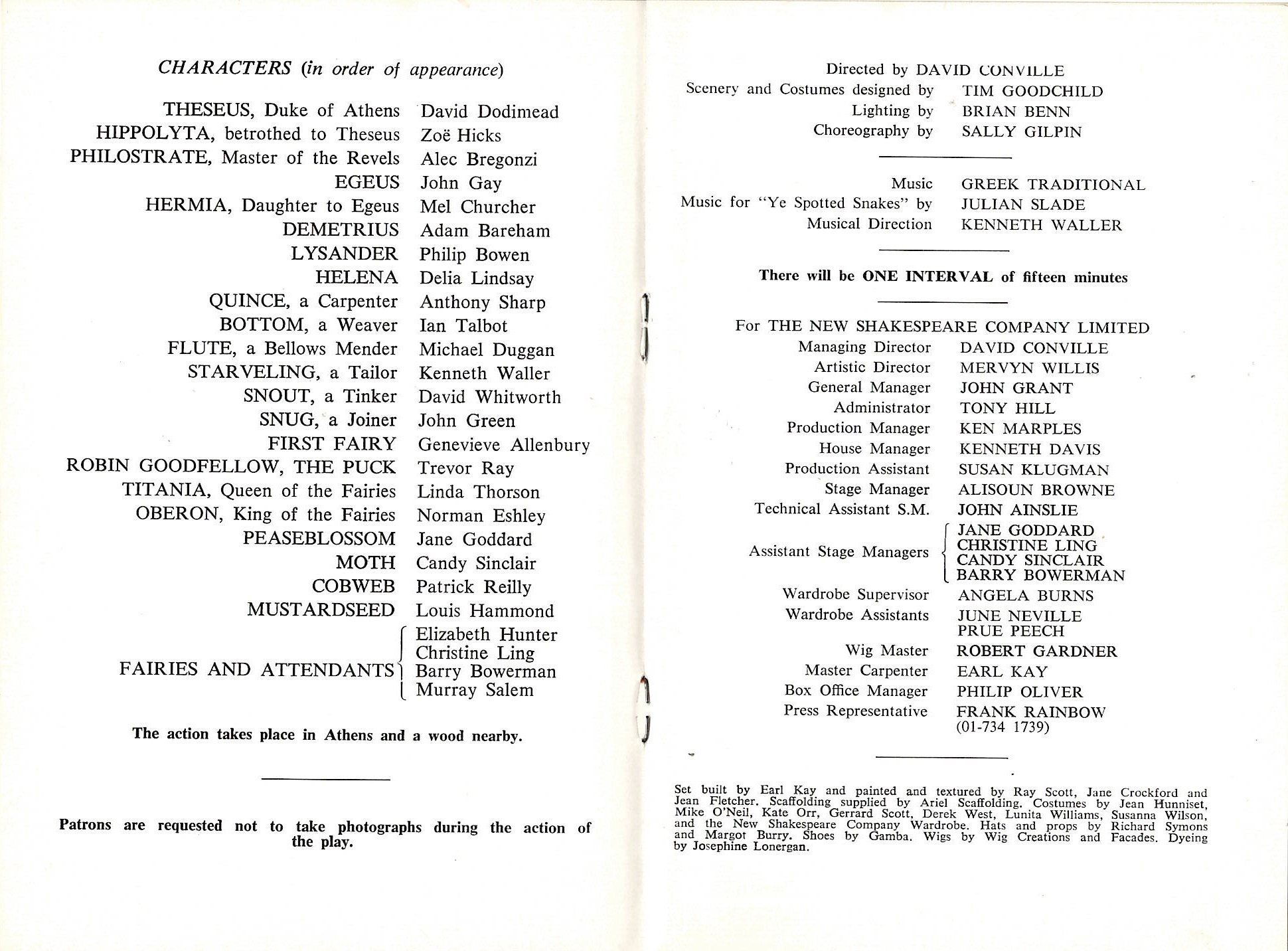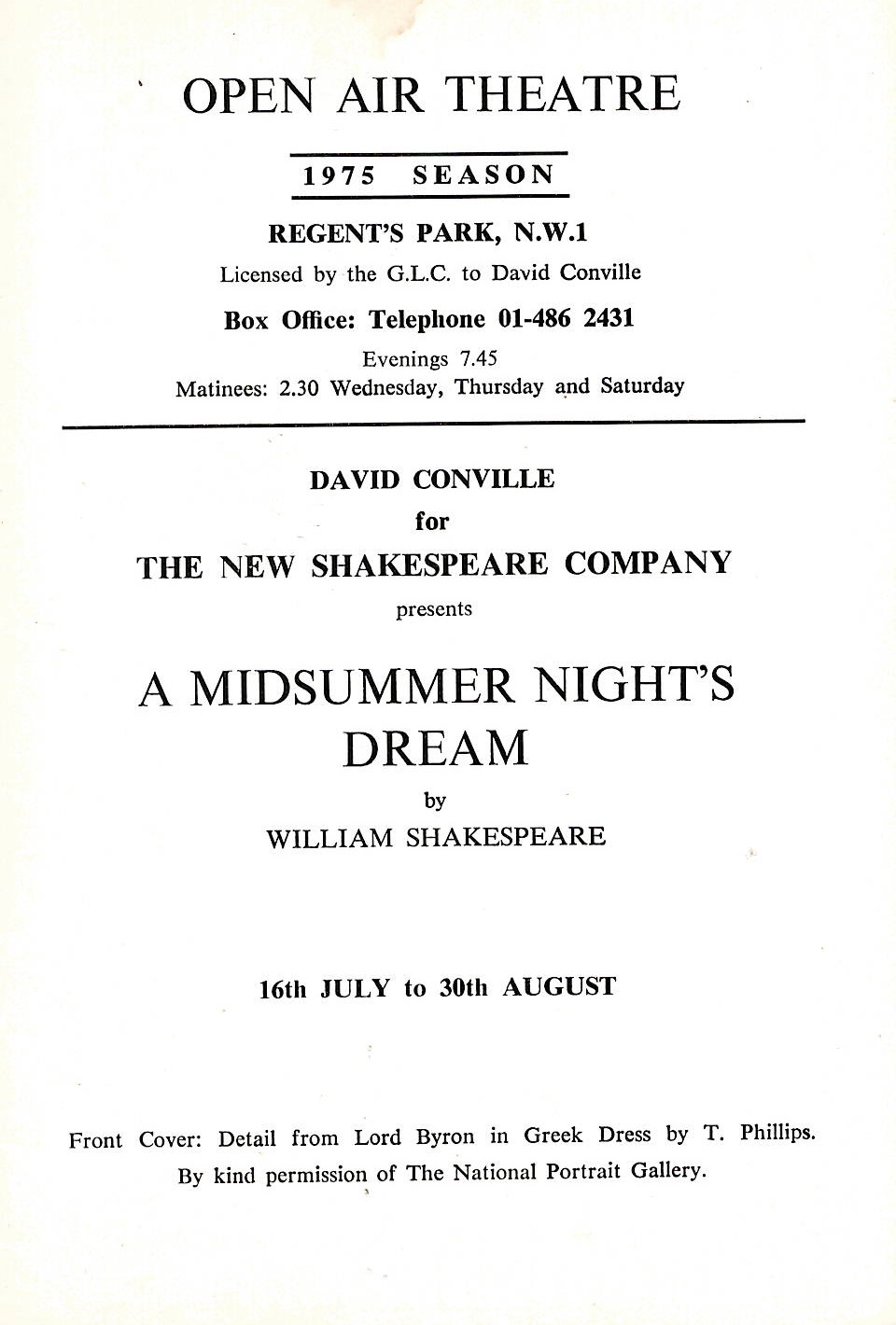 David Conville directed this 1975 production of A Midsummer Night's Dream, which featured Ian Talbot as Bottom.