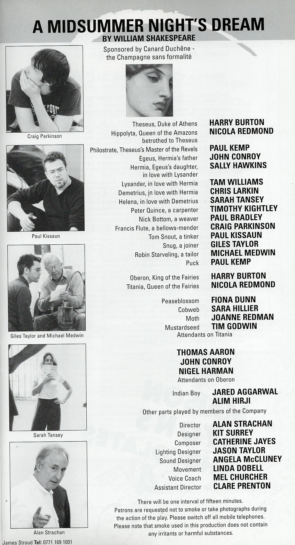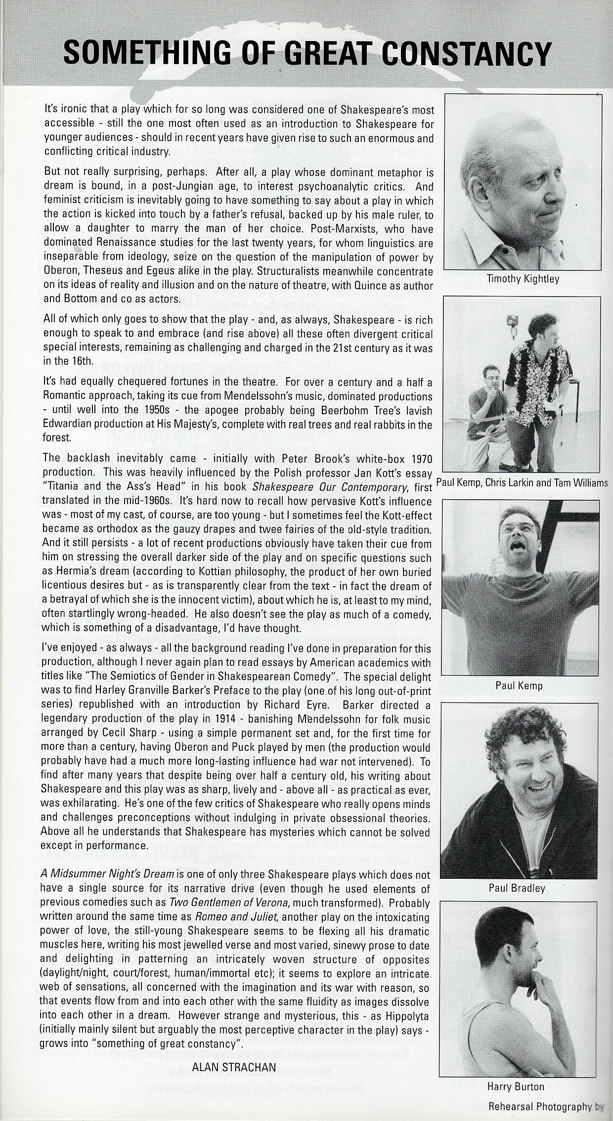 Alan Strachan directed the 2000 production of A Midsummer Night's Dream which featured Paul Bradley as Nick Bottom and a young Craig Parkinson (Line of Duty) as Francis Flute.