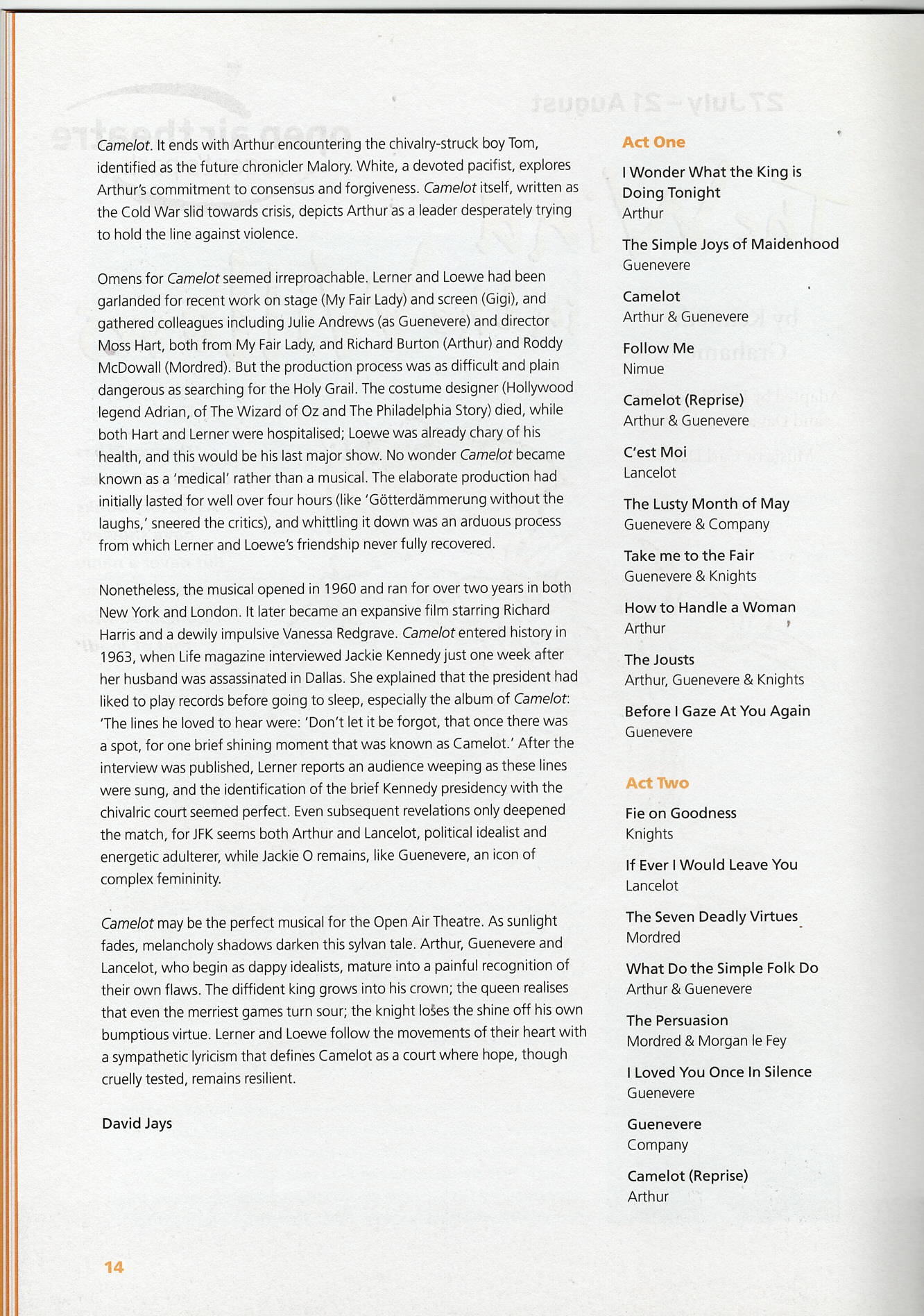 Ian Talbot directed this 2004 production of Camelot, which featured Daniel Flynn as Arthur and Lauren Ward as Guenevere.