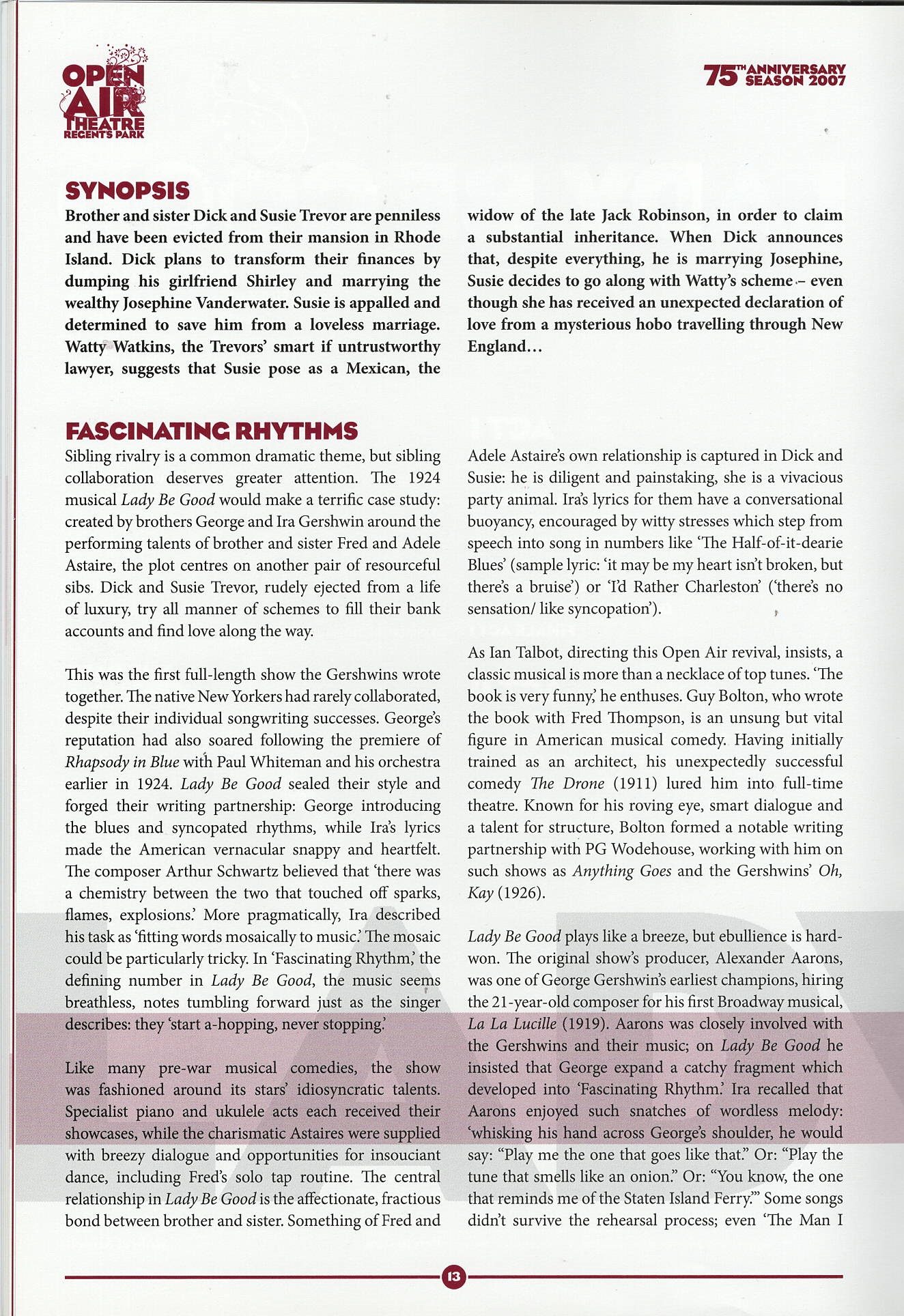 2007 saw a revival of the then Artistic Director Ian Talbot's 1992 production of Lady Be Good.
