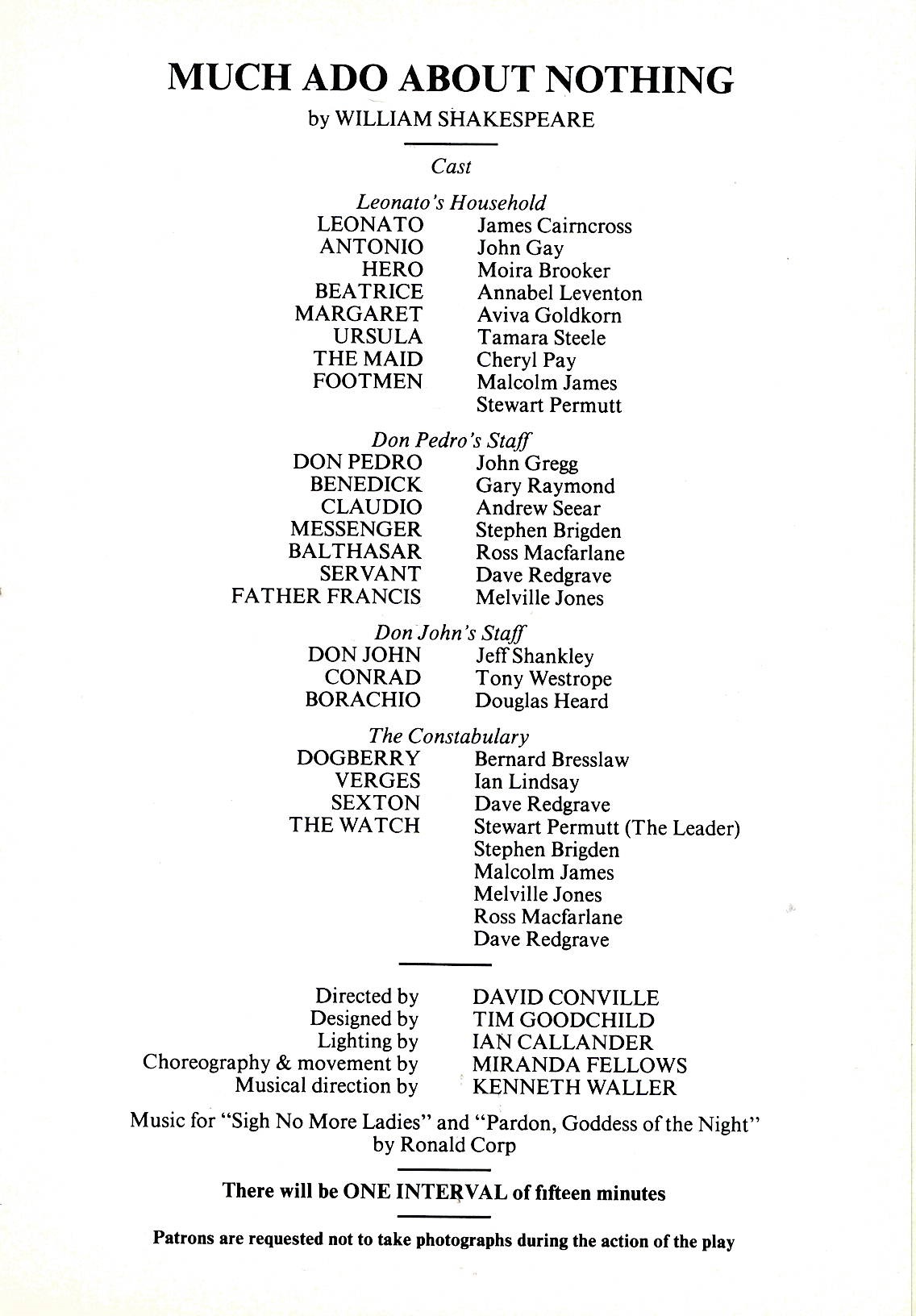 David Conville directed the 1980 production of Much Ado About Nothing, which featured Bernard Bresslaw as Dogberry.