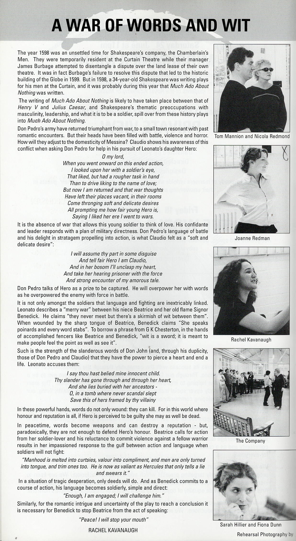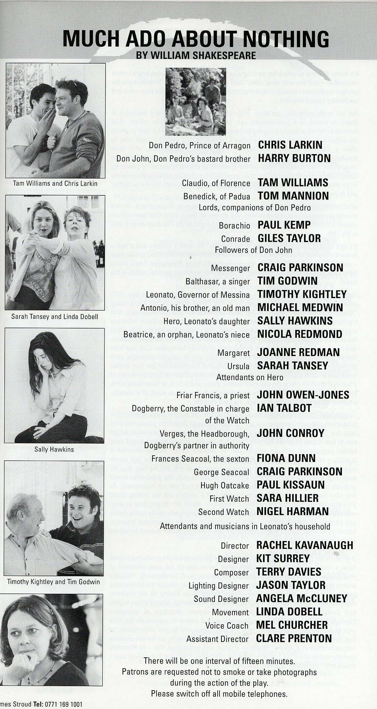 Rachel Kavanaugh directed the 2000 production of Much Ado About Nothing which featured a young Craig Parkinson (Line of Duty) as Messenger/George Seacoal.