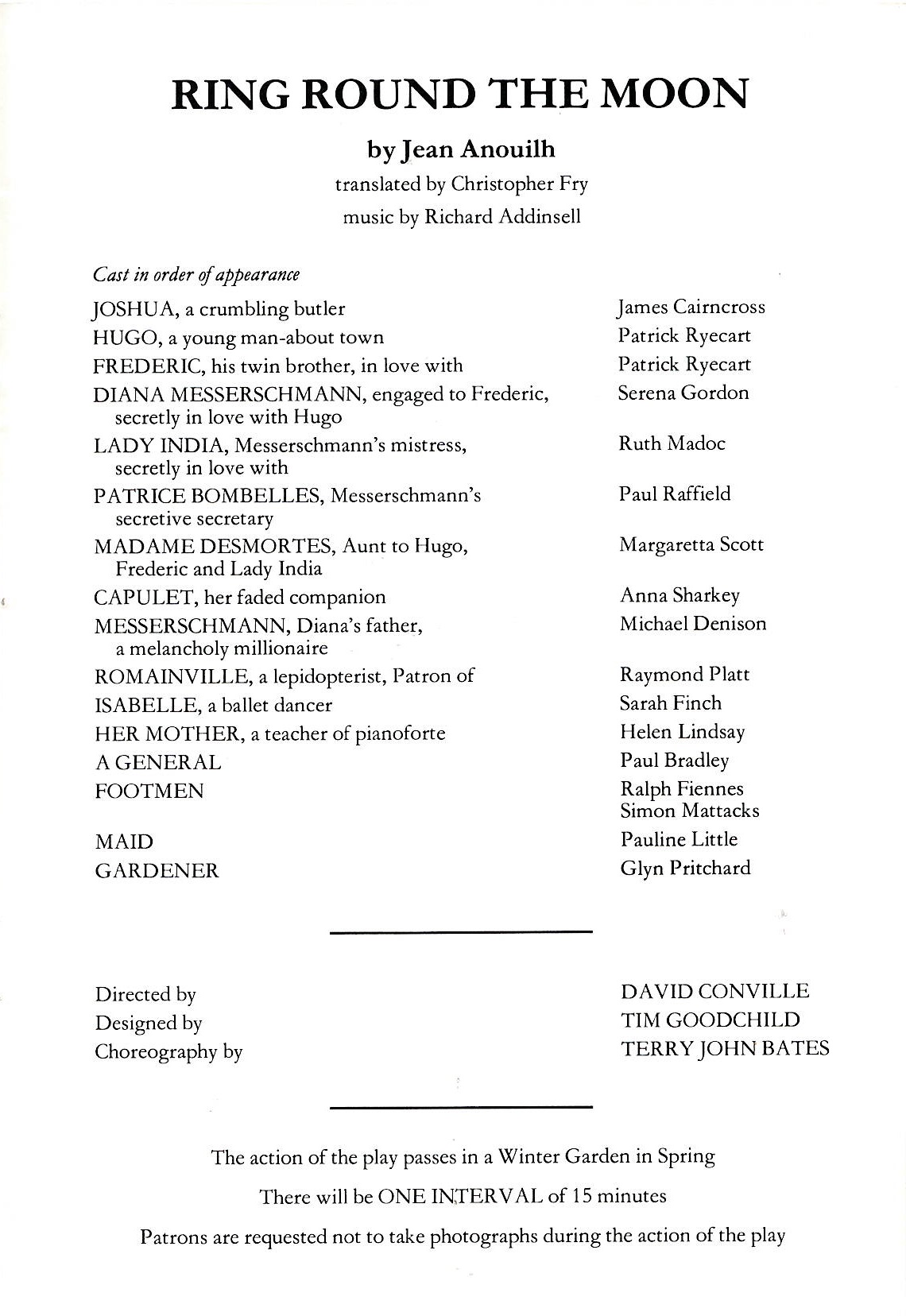 by Jean Anouilh, transalted by Christopher Fry, music by Richard Addinsell