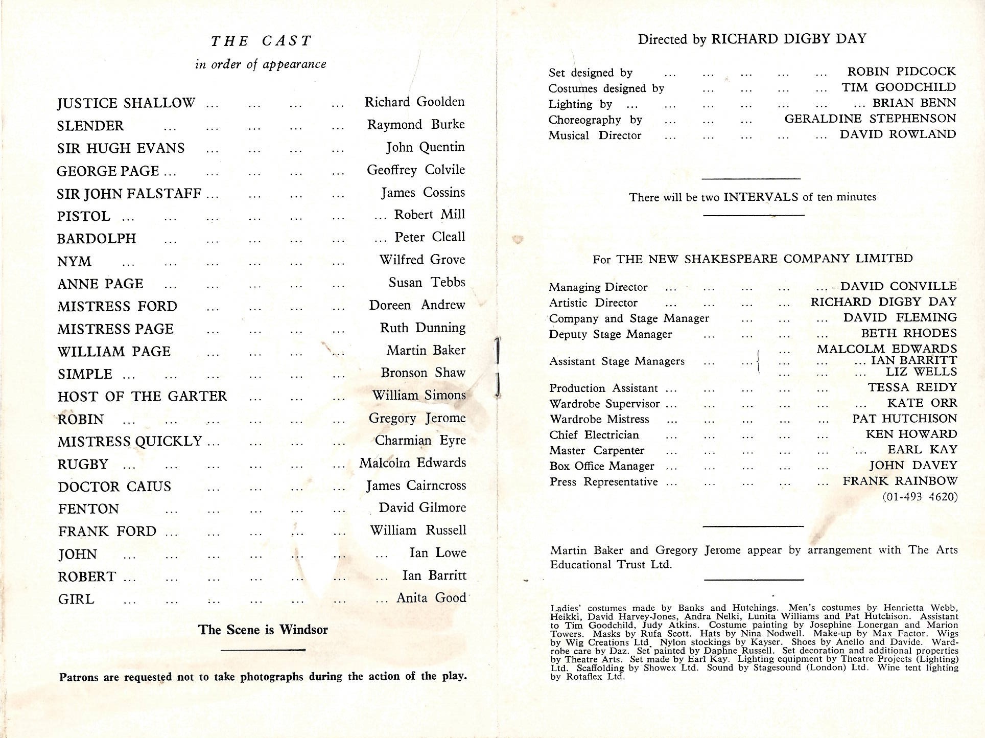 Richard Digby Day directed this 1968 production of The Merry Wives of Windsor, featuring James Cossins as Sir John Falstaff.