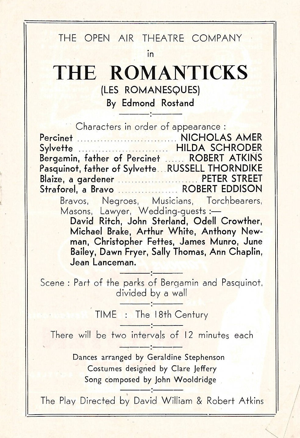 David William and Robert Atkins directed the 1955 production of The Romanticks.