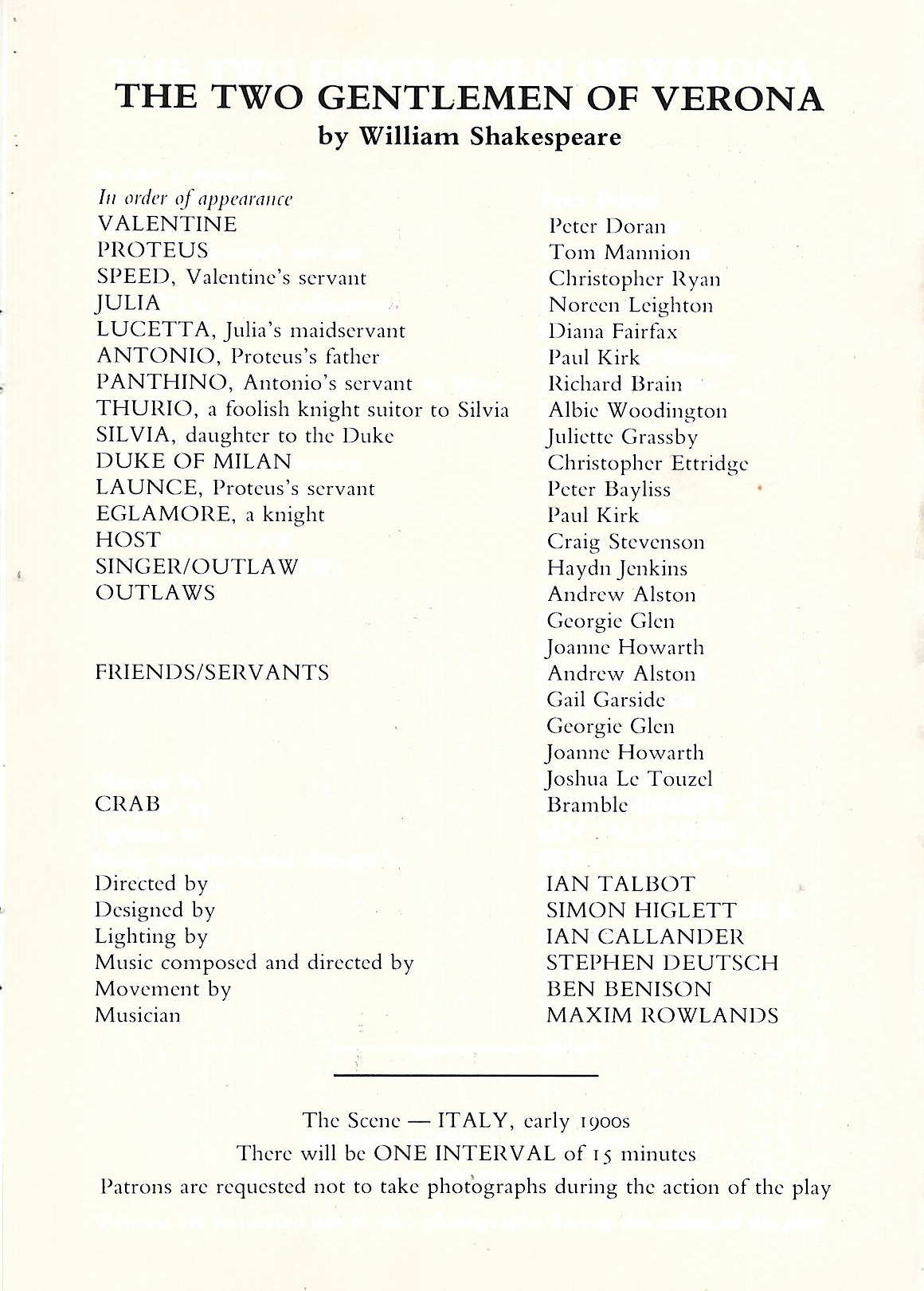 This 1987 production of The Two Gentlemen of Verona was directed by Ian Talbot.