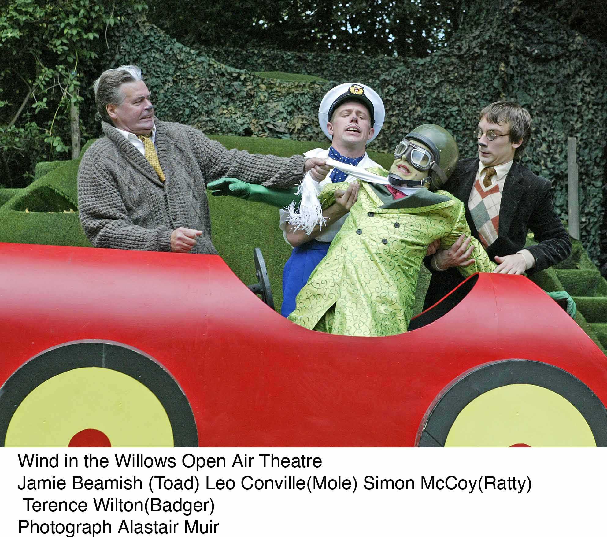 "Laura Baggaley's production zips along at a fair and fluid pace...children quickly relishing the chance to hiss a villain or assist with Toad's escape from jail...Leo Conville, Simon McCoy and Terence Wilton are excellent as Mole, Ratty and Badger respectively and Jamie Beamish is highly entertaining as their bumptious friend."