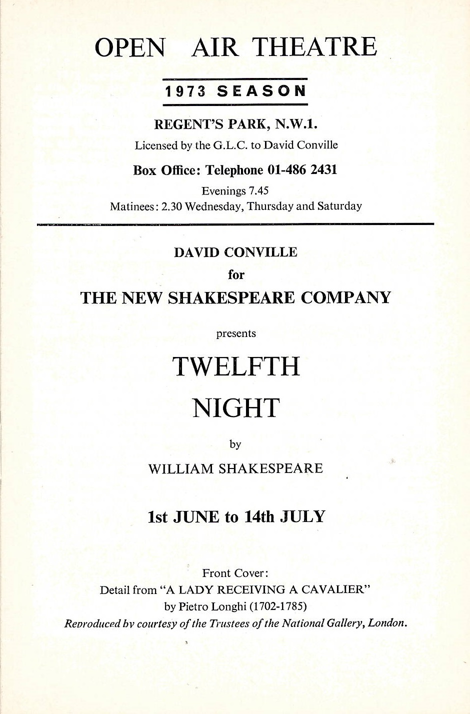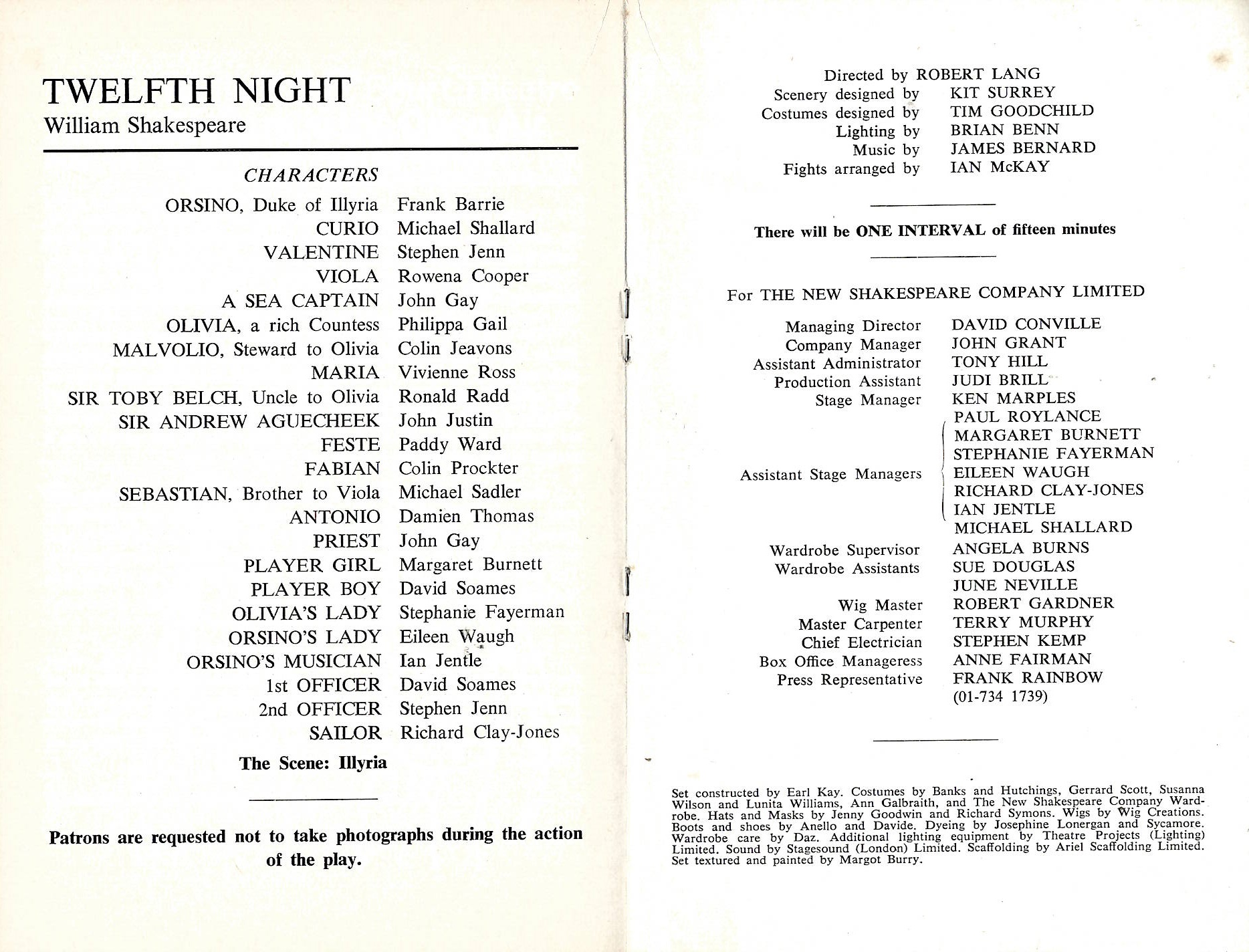Robert Lang directed this 1973 production of Twelfth Night which featured Rowena Cooper as Viola, Philippa Gail as Olivia and Colin Jeavons as Malvolio.