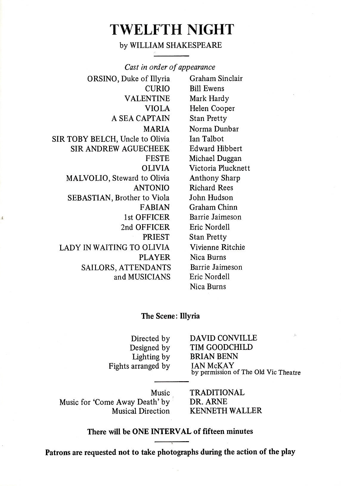 David Conville directed the 1979 production of Twelfth Night, which featured Ian Talbot as Sir Toby Belch and Nimax Theatres' Nica Burns as a player.