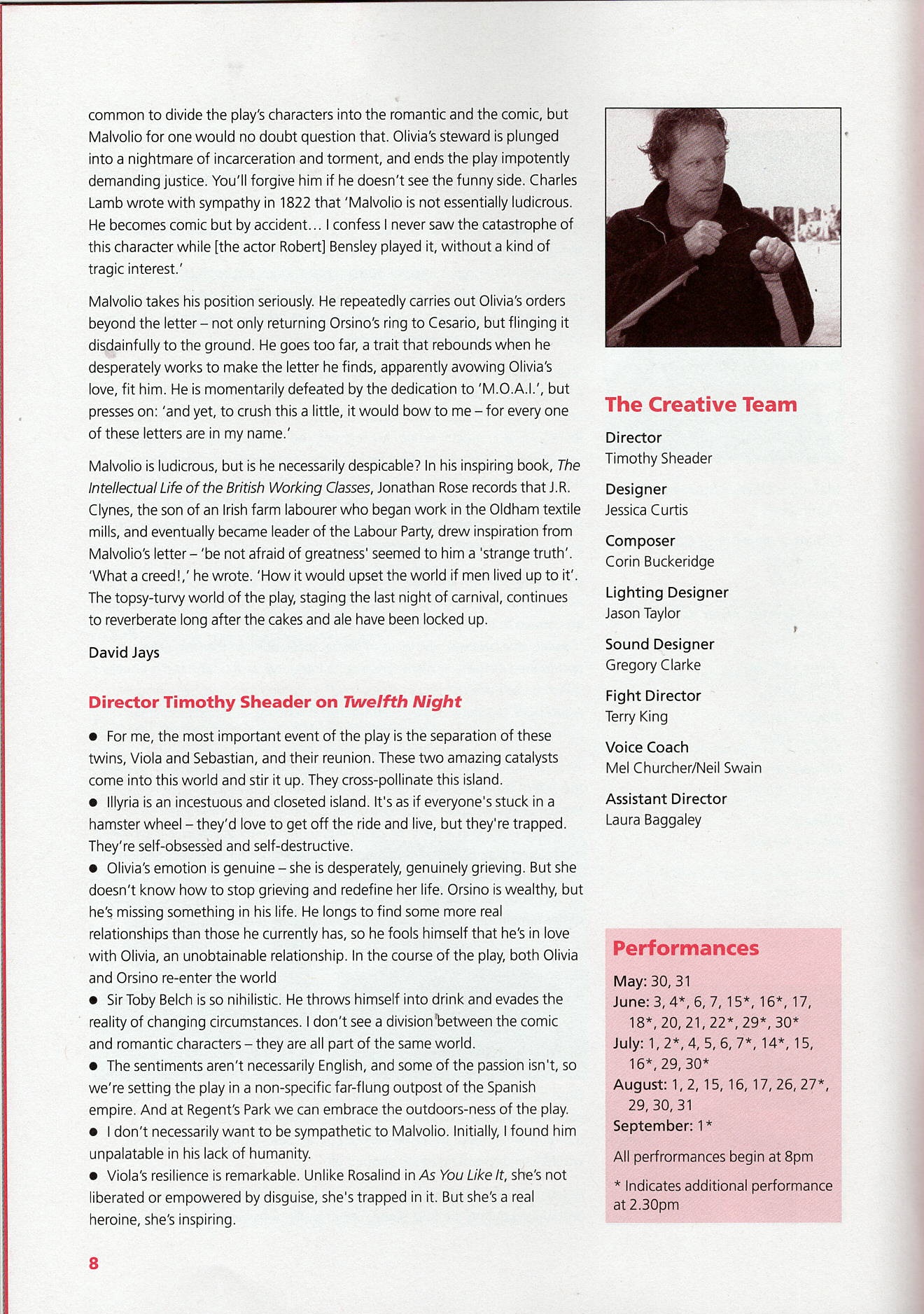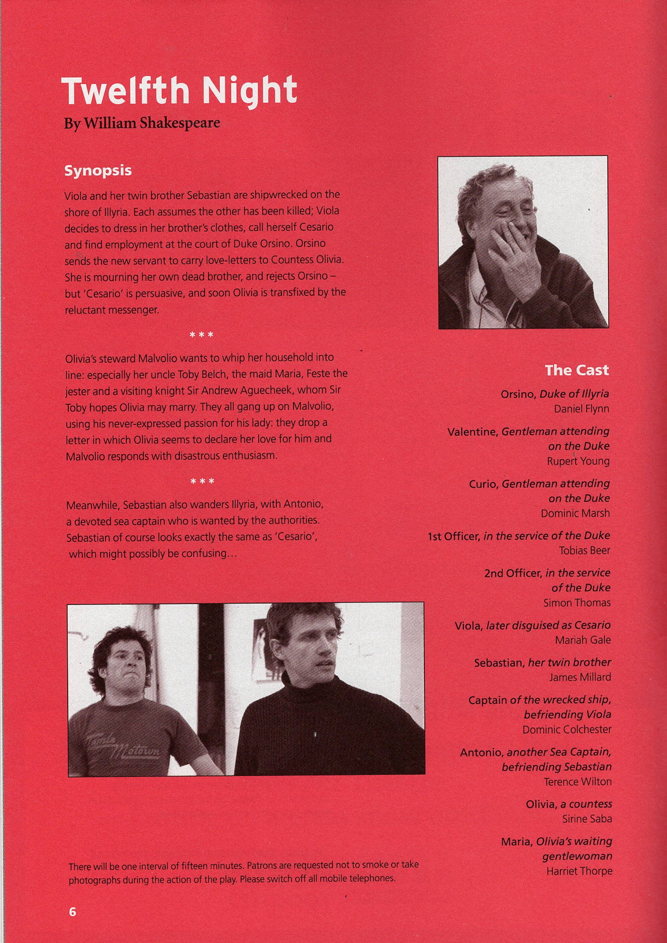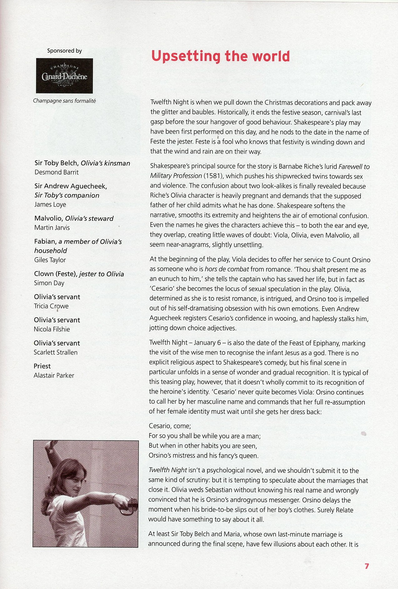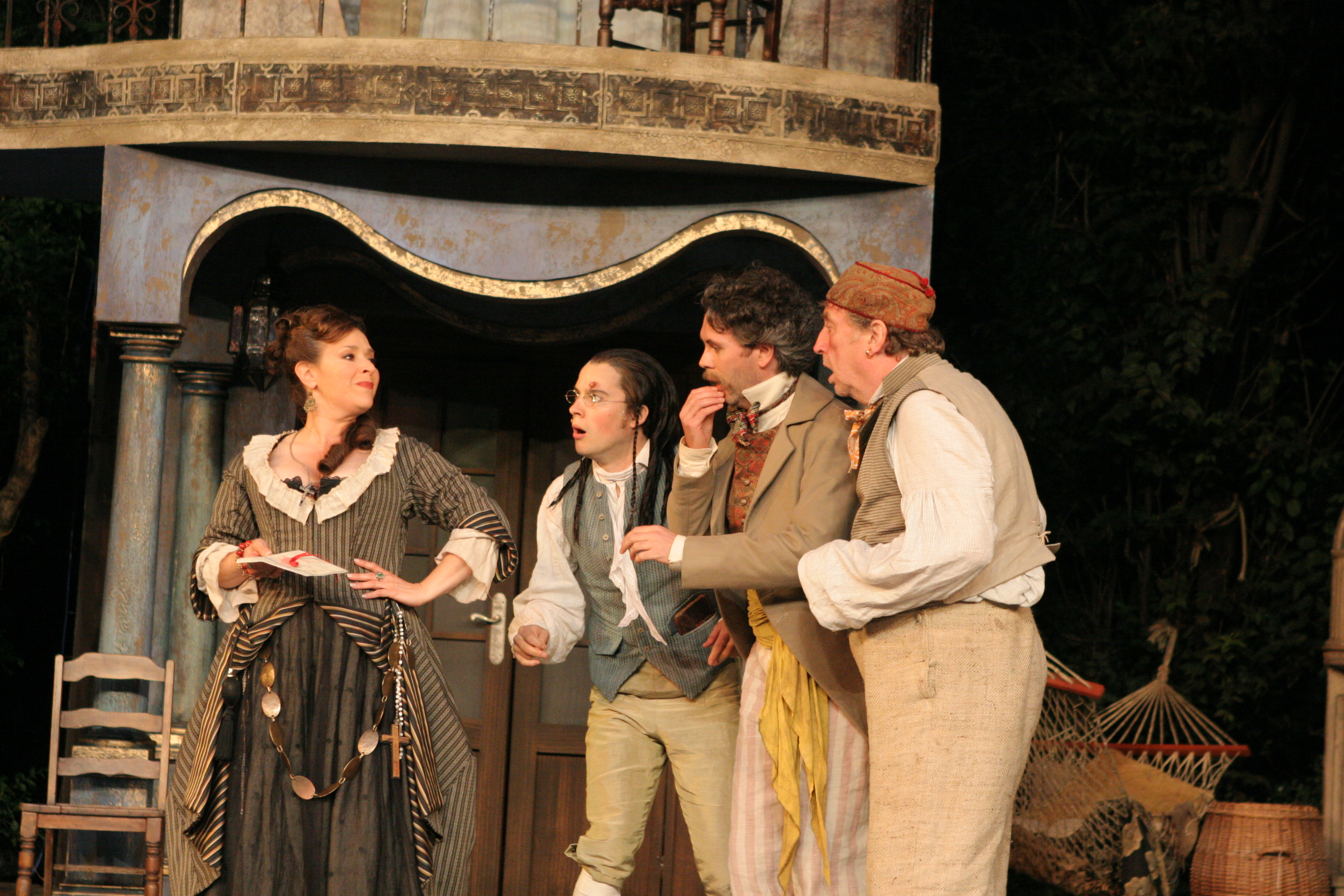 This 2005 production of Twelfth Night was the Open Air Theatre directorial debut of the nor Artistic Director Timothy Sheader. He opted to set the play in a non-specific far-flung outpost of the Spanish empire.
